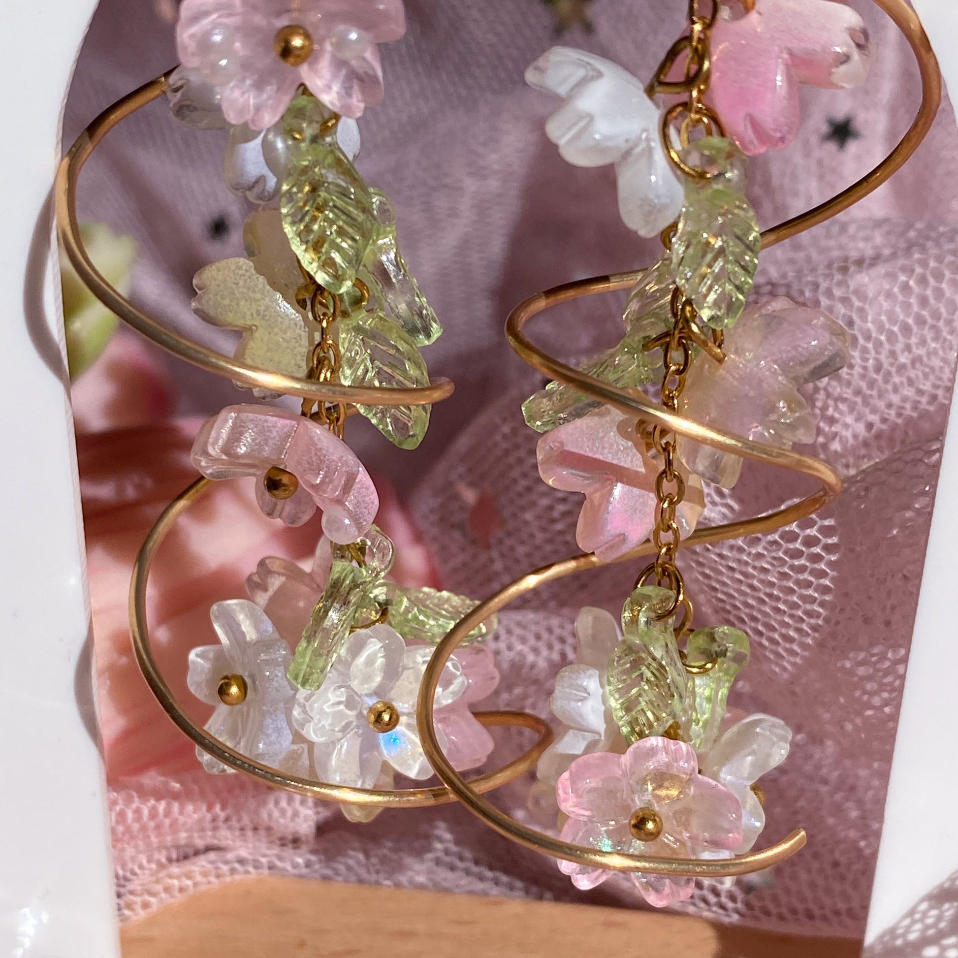 Effortless elegance meets wildflower charm with our Floral Cascade Earrings ཐི༏ཋྀ󠀮! 🌸 Delicate flowers cascade down your ear, cradled in a swirling luminous coil that represents the movement of petals drifting down, with tiny pearls symbolizing morning dew  ❀⋆.ೃ࿔*:・
