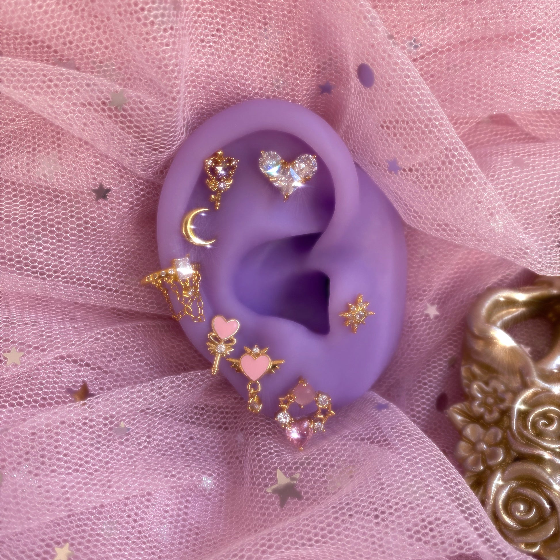 Upgrade your jewelry collection with our lovely Heart Guardian Scepter Piercing! This charming and stylish piece is the perfect addition to any fashion-forward individual's accessory game ✨🌙💕