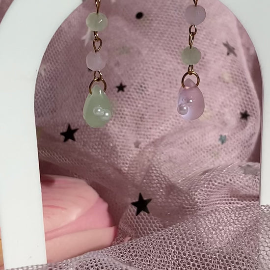 Embody the enchanting essence of the forest nymph with our delicate, nymph-inspired Nymph's Whisper Earrings. Featuring soft pink and jade teardrop beads, and adorned with tiny pearls, inspired by translucent morning dew 💧 Crafted with love and attention to detail, this necklace is perfect for those who dream of fairy tales.