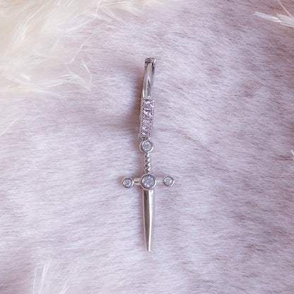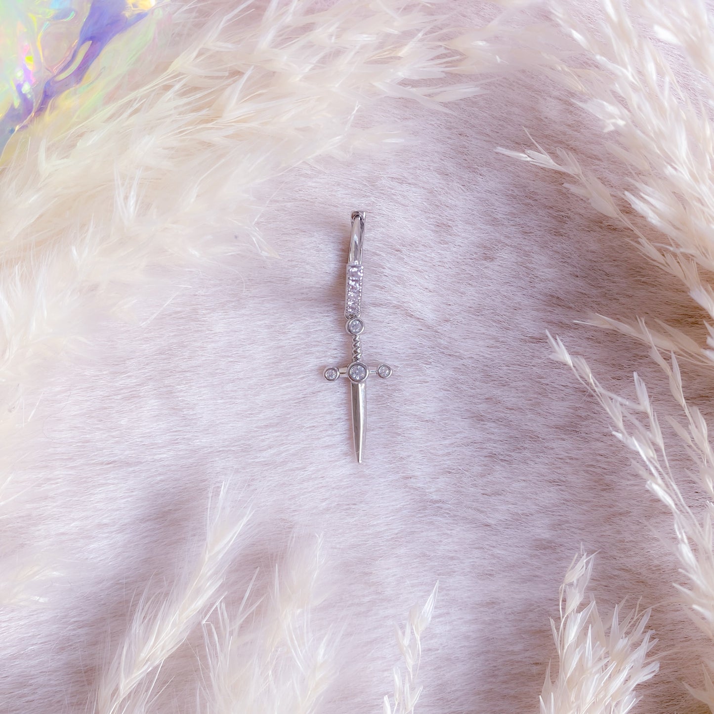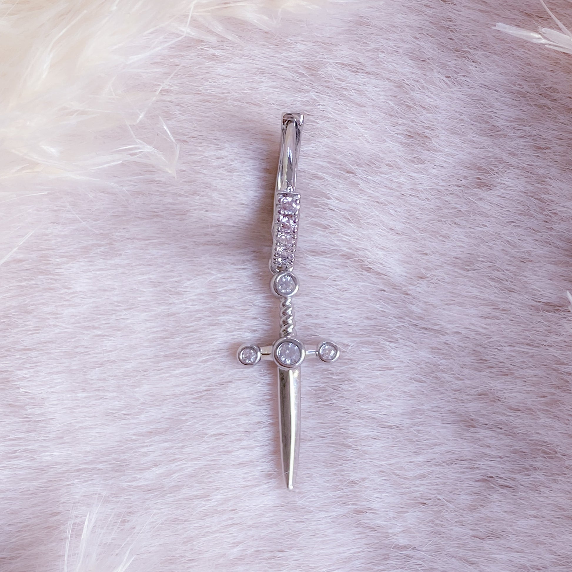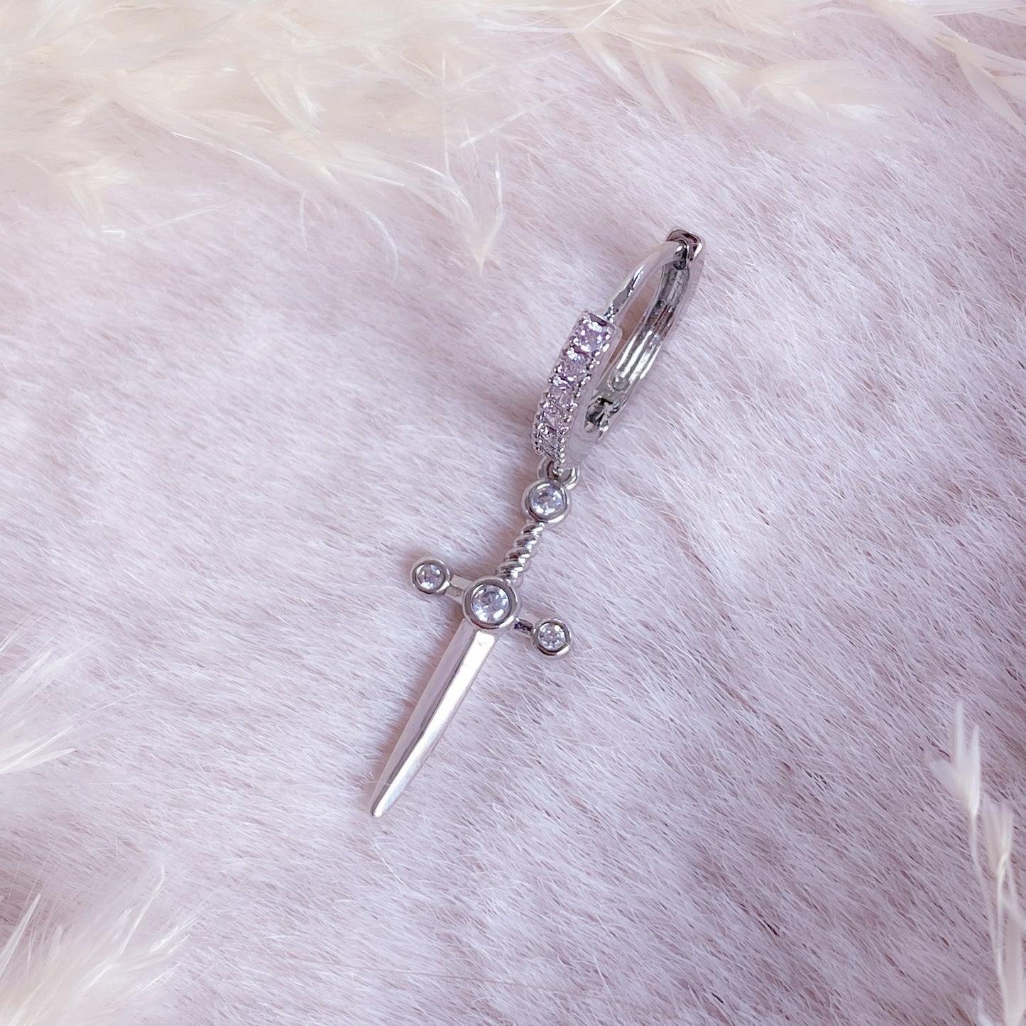 Complete your edgy look with our Sparkly Sword Hoop. Add a touch of rebellion and a dash of sparkle to your outfit with this statement piece. 🌙 💗✨