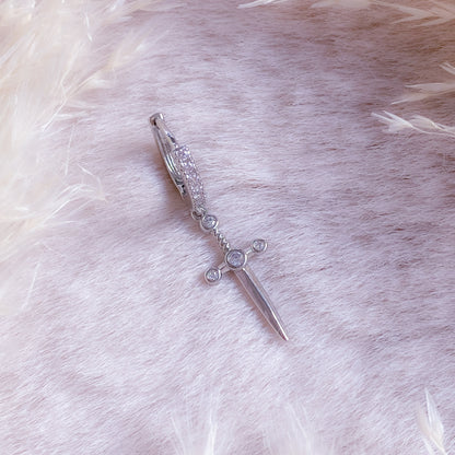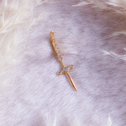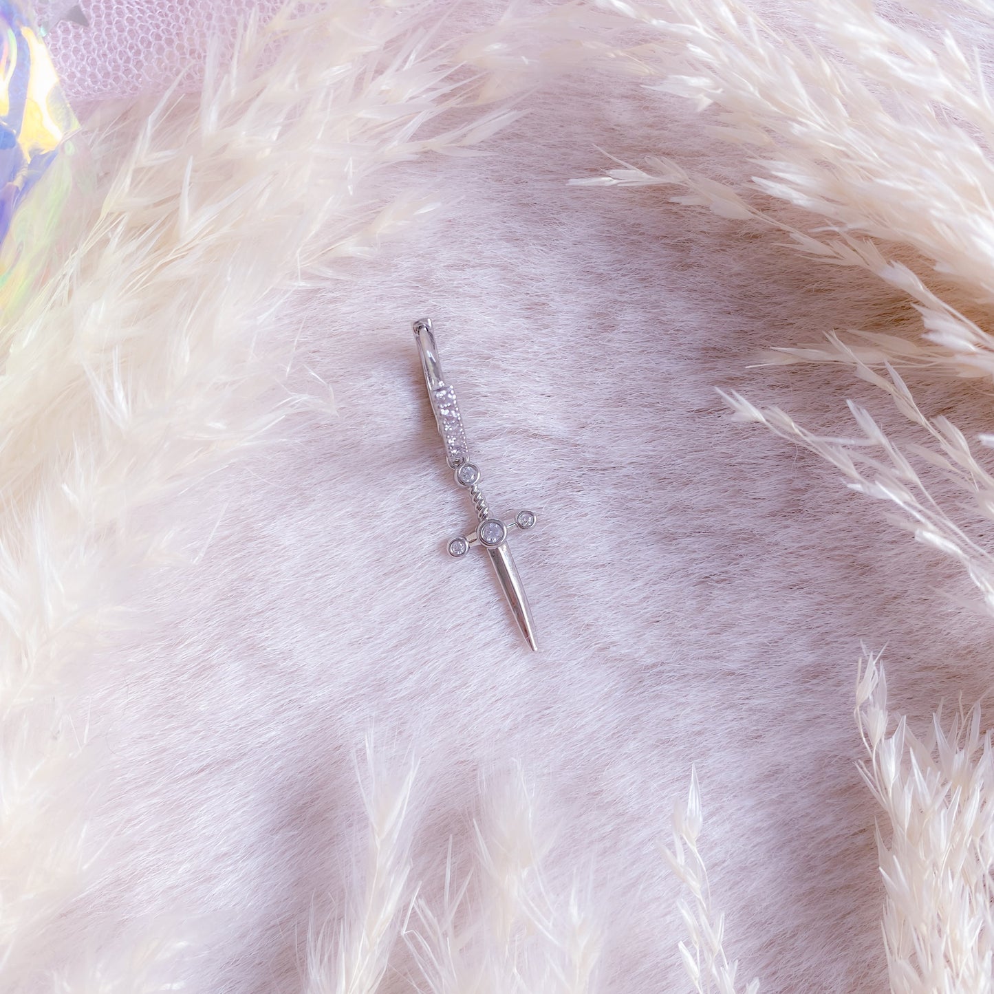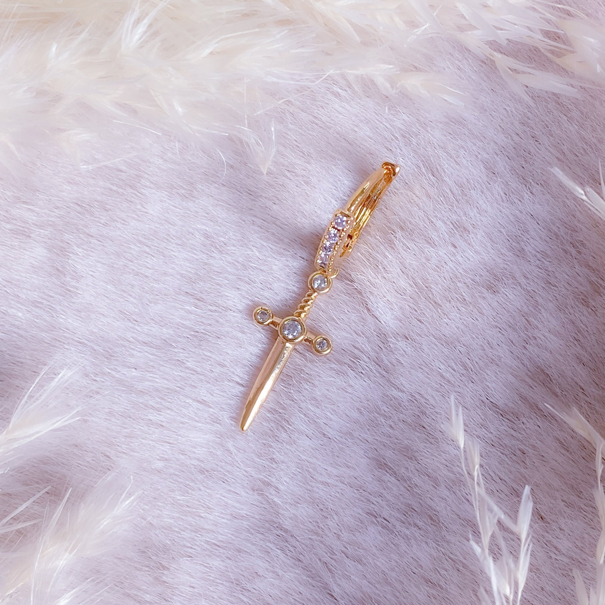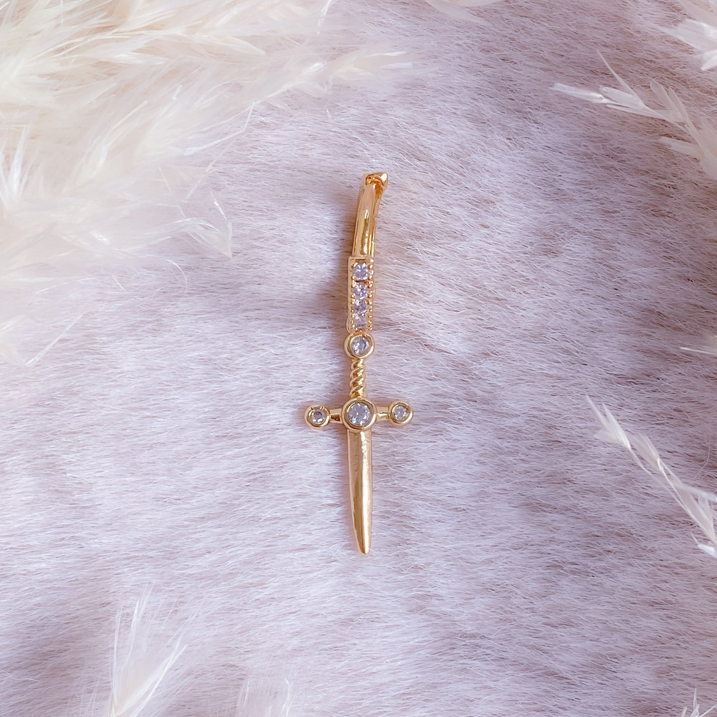 Complete your edgy look with our Sparkly Sword Hoop. Add a touch of rebellion and a dash of sparkle to your outfit with this statement piece. 🌙 💗✨