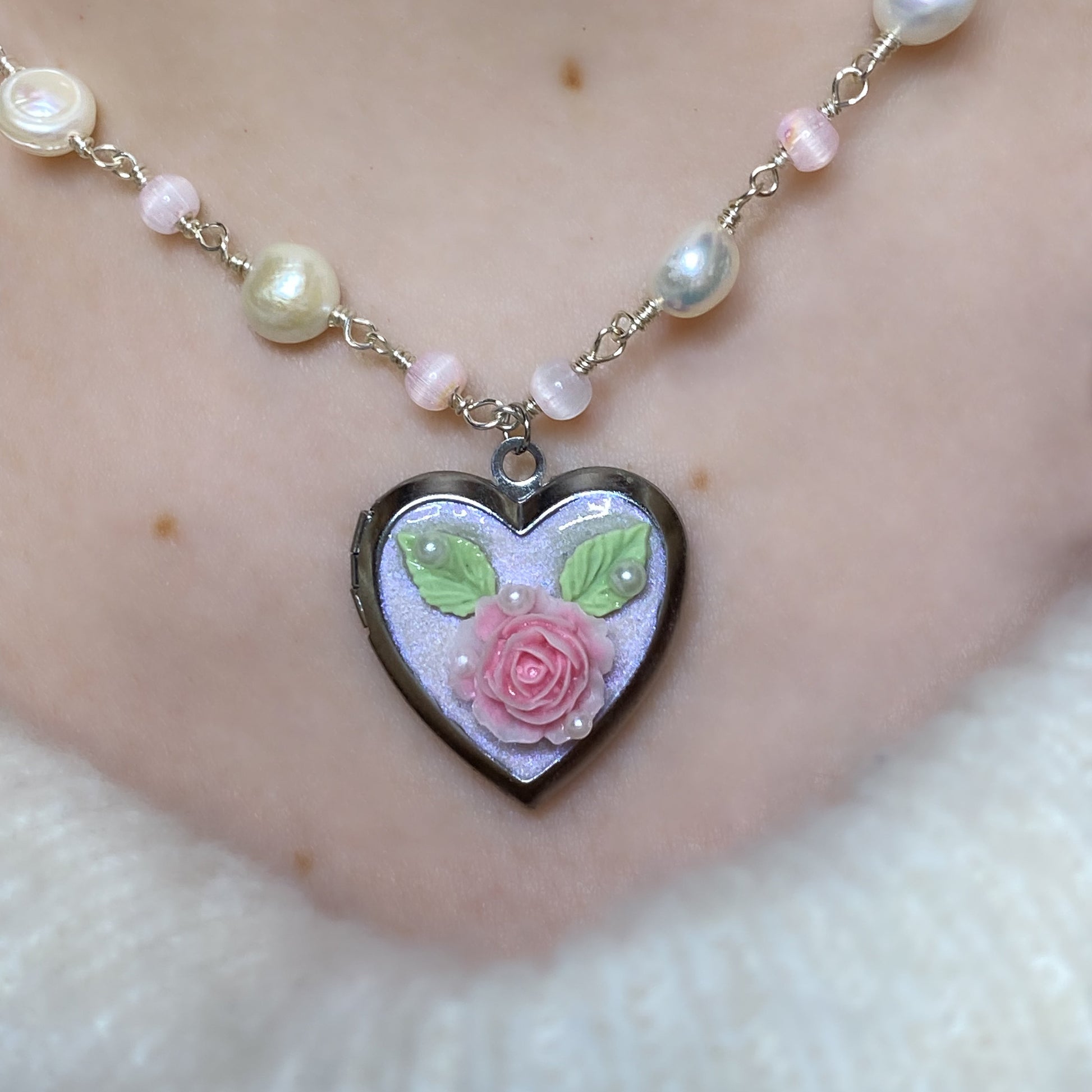 A delicate locket adorned with roses, holding memories close to your heart 💌: meet our Blossom Memory Locket Necklace. Choose between 3 necklace styles (freshwater pearls, crystal beads or simple chain) and 2 flowery pendants 🌸 Open the locket and insert up to 2 favorite pictures (of your favorite person or pet, or anything else you want!) to always keep them close to heart ⋆˙⟡