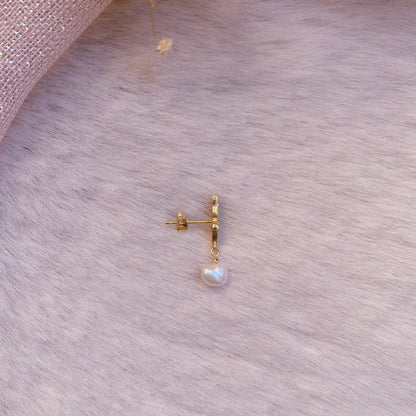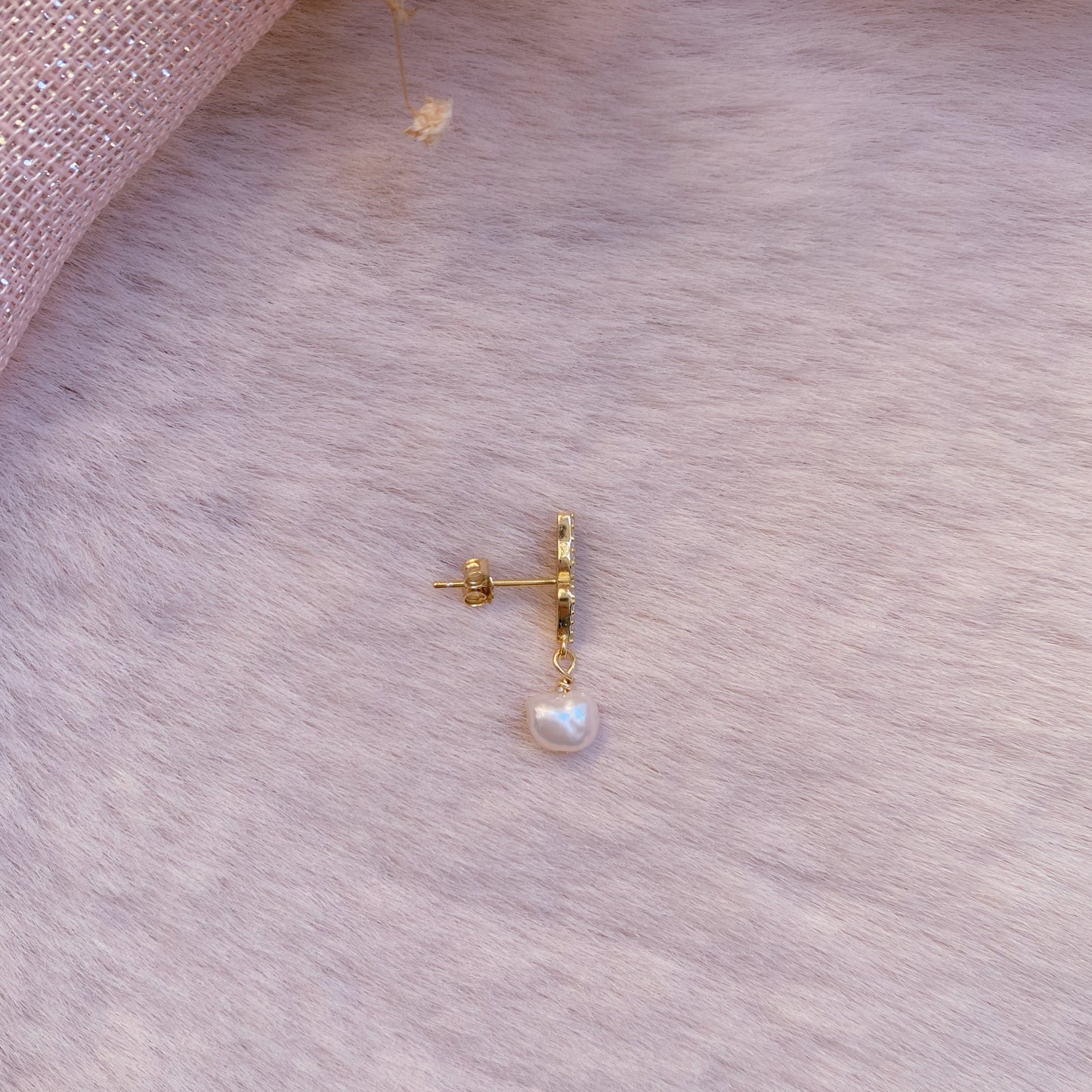 ☾ Thick 18K Gold Plating (all metal parts), 925 Sterling Silver (earring), Freshwater Pearl, Premium Hand-Polished Zirconia Stones. Nickel free ✨
