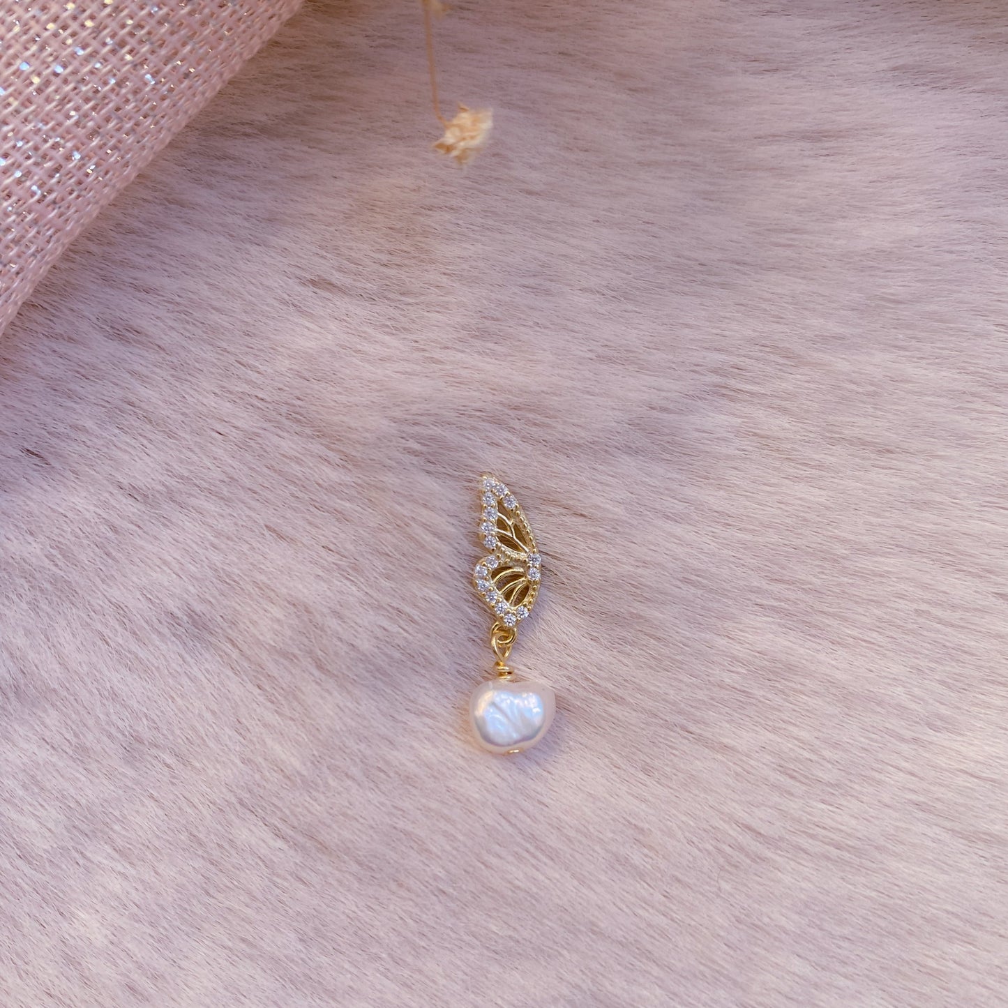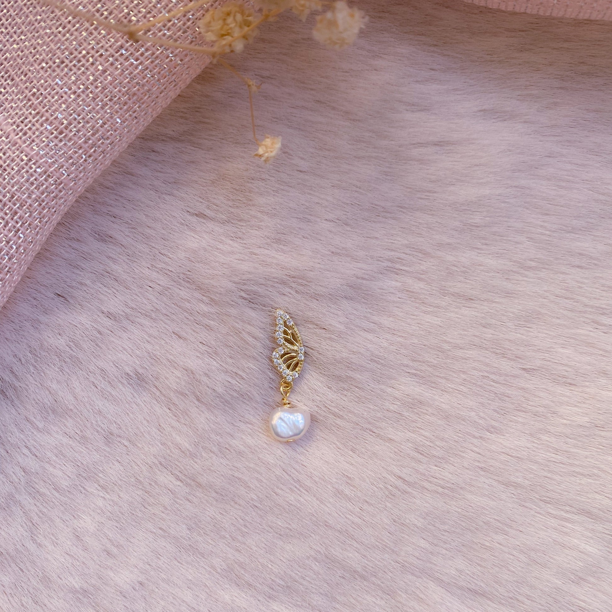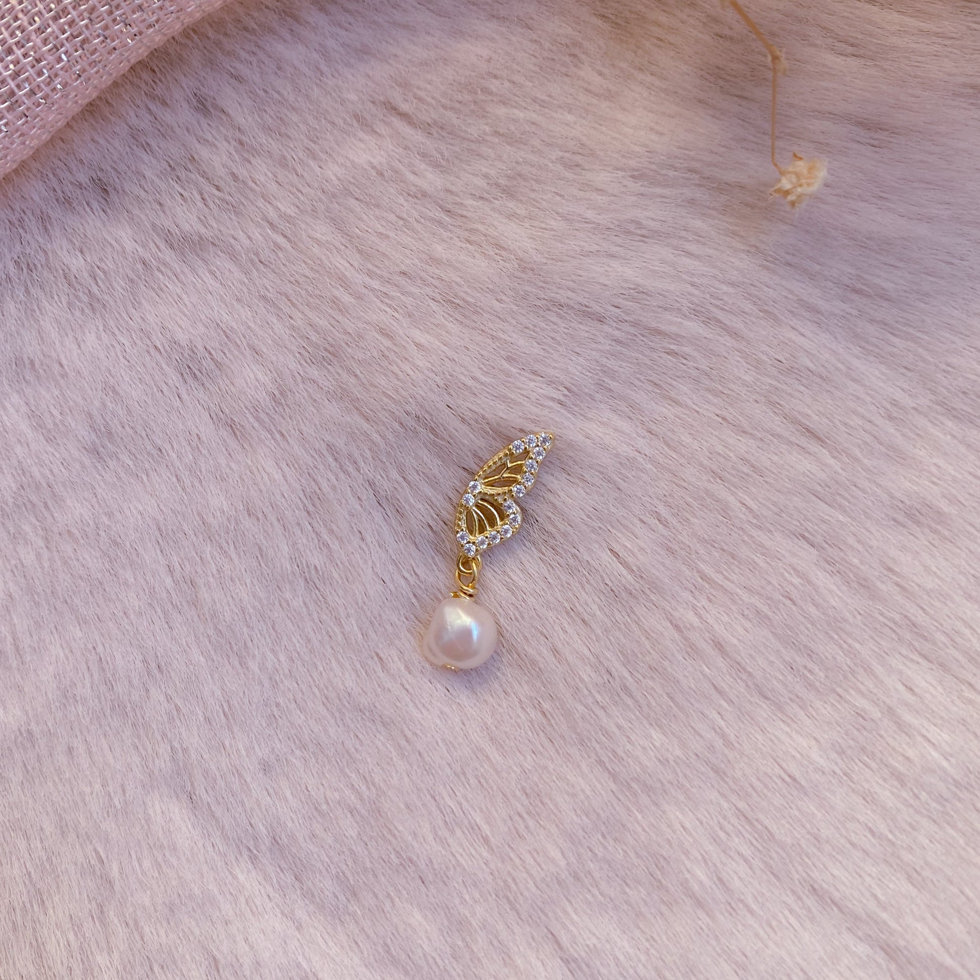 The 𝒟𝒶𝒾𝓃𝓉𝓎 𝐵𝓊𝓉𝓉𝑒𝓇𝒻𝓁𝓎 𝒫𝑒𝒶𝓇𝓁 𝐸𝒶𝓇𝓇𝒾𝓃𝑔 adds light to your ears thanks to its shiny stones and luscious freshwater pearls: romantic and sleek, it adds that extra flair to any ear parties! ✨🌷🦋