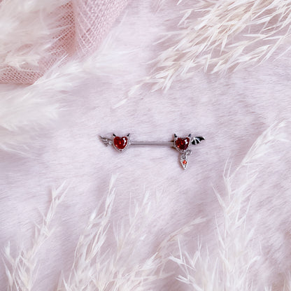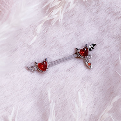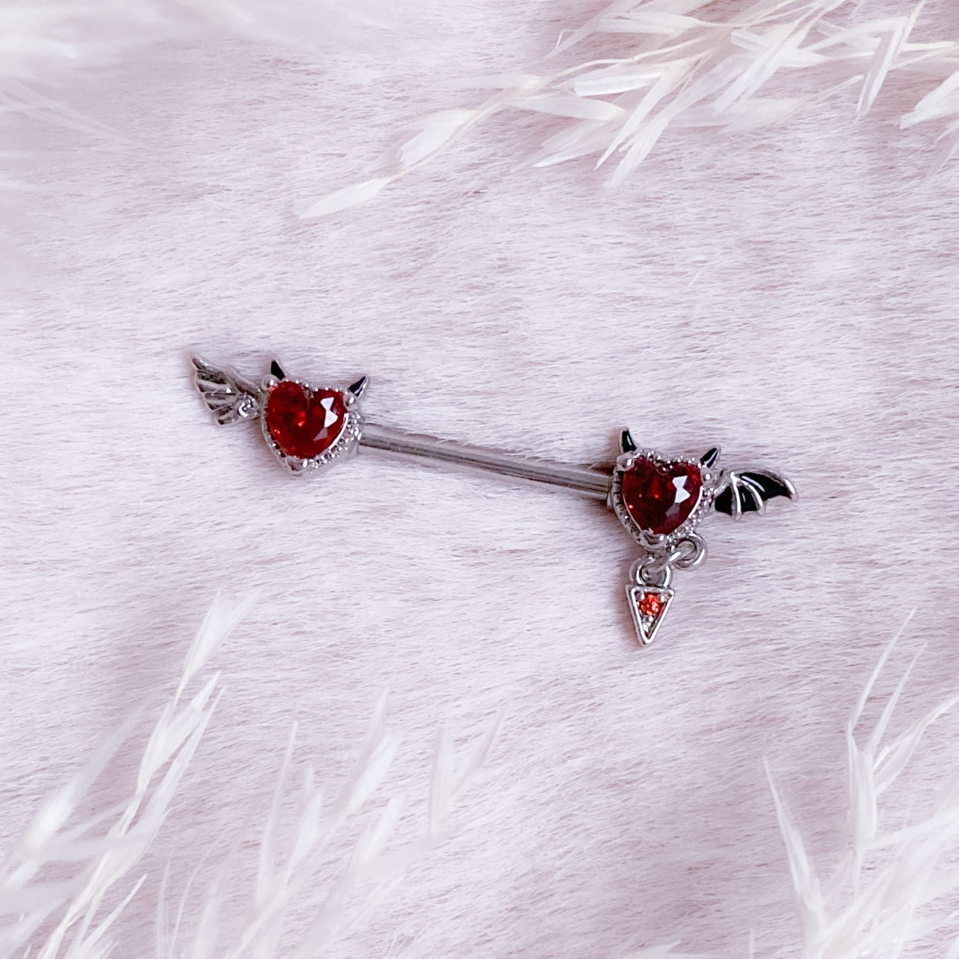 On the hunt for a cute jewelry piece for your nipple piercing? Our cute yet punk Dark Devil Heart Heart Nipple Bar is the perfect little piece to showcase your adorable side, while embracing a darker, mysterious side too ✨🥀 Perfect for those who don't take themselves too seriously (and don't mind a little devilish fun) ❤️🌙