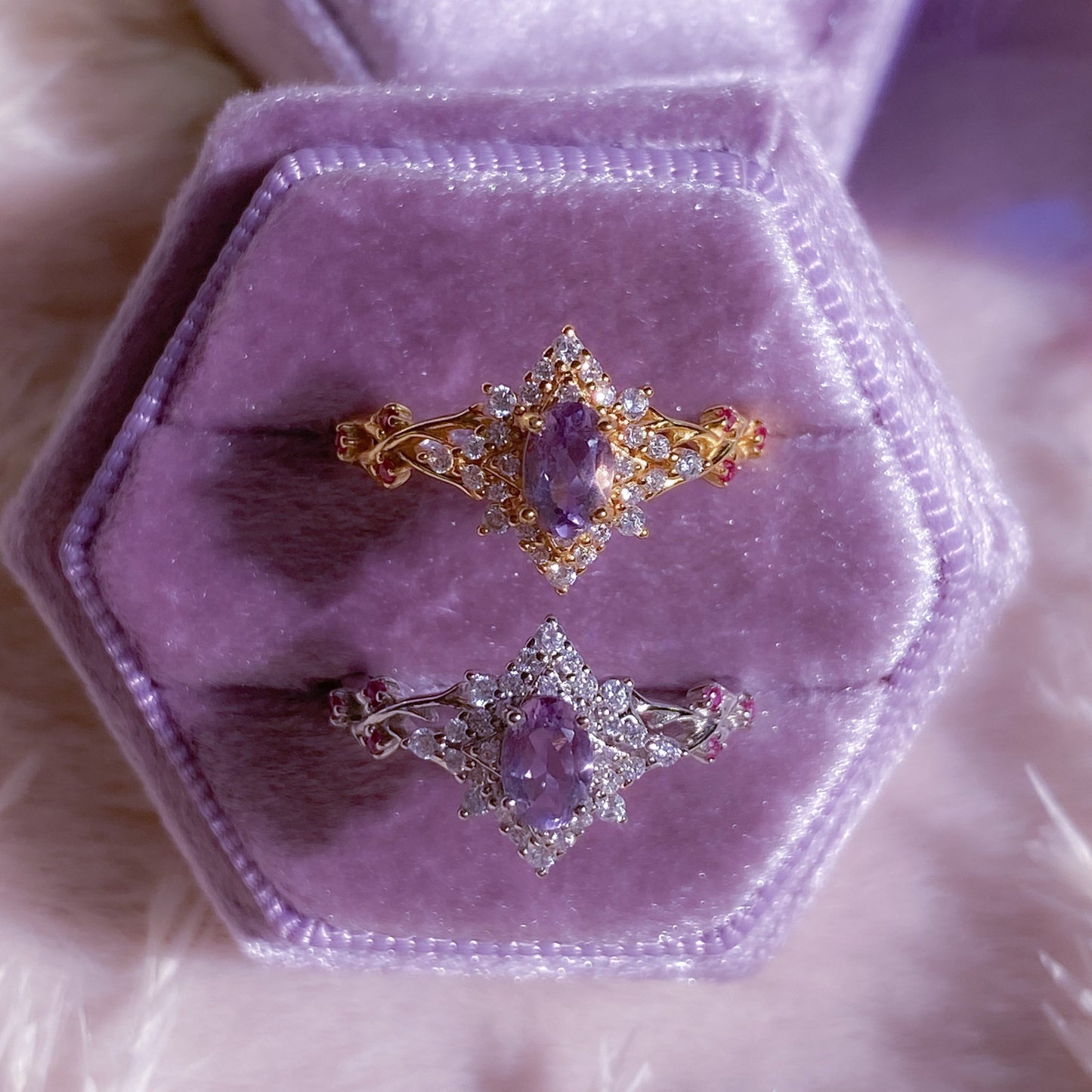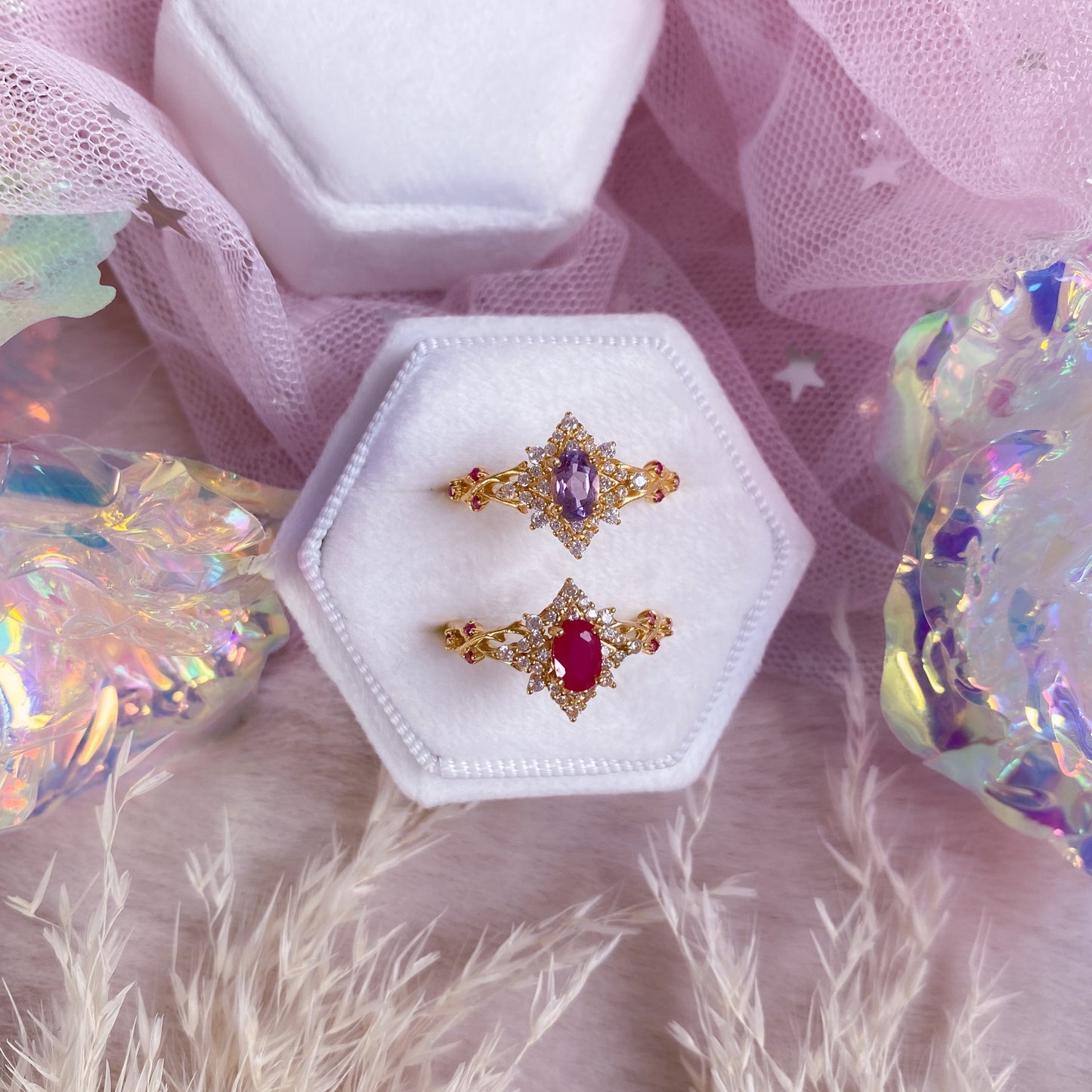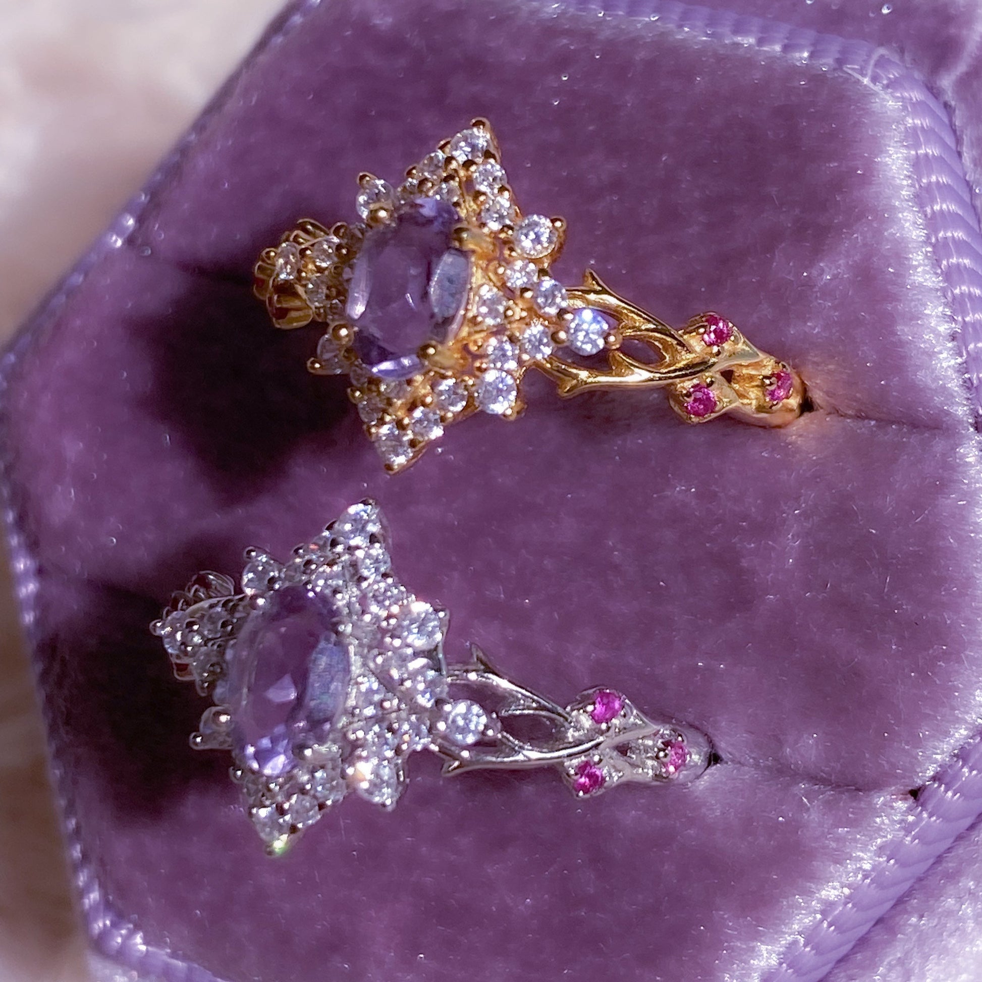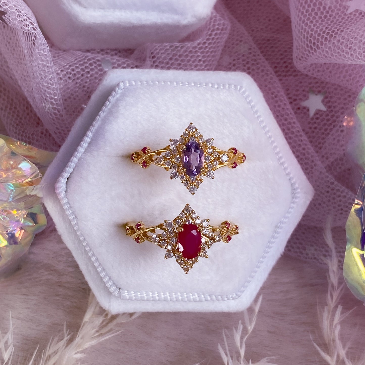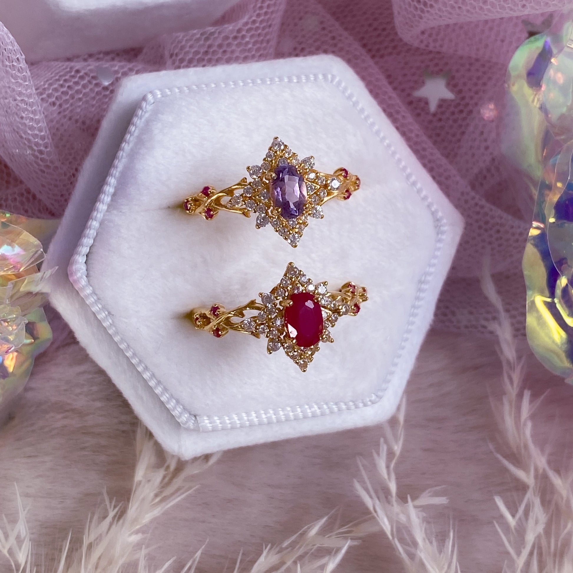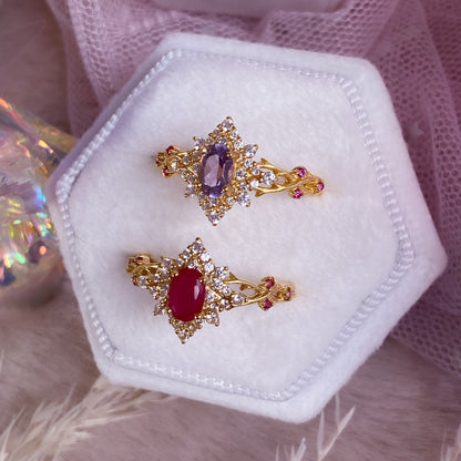 ☾ Materials: Thick 24K Gold Plating, 925 Sterling Silver, Authentic Natural Tanzanite, Lab-Grown Rubies, Premium Hand-Polished Zirconia Stones. Nickel free ✨