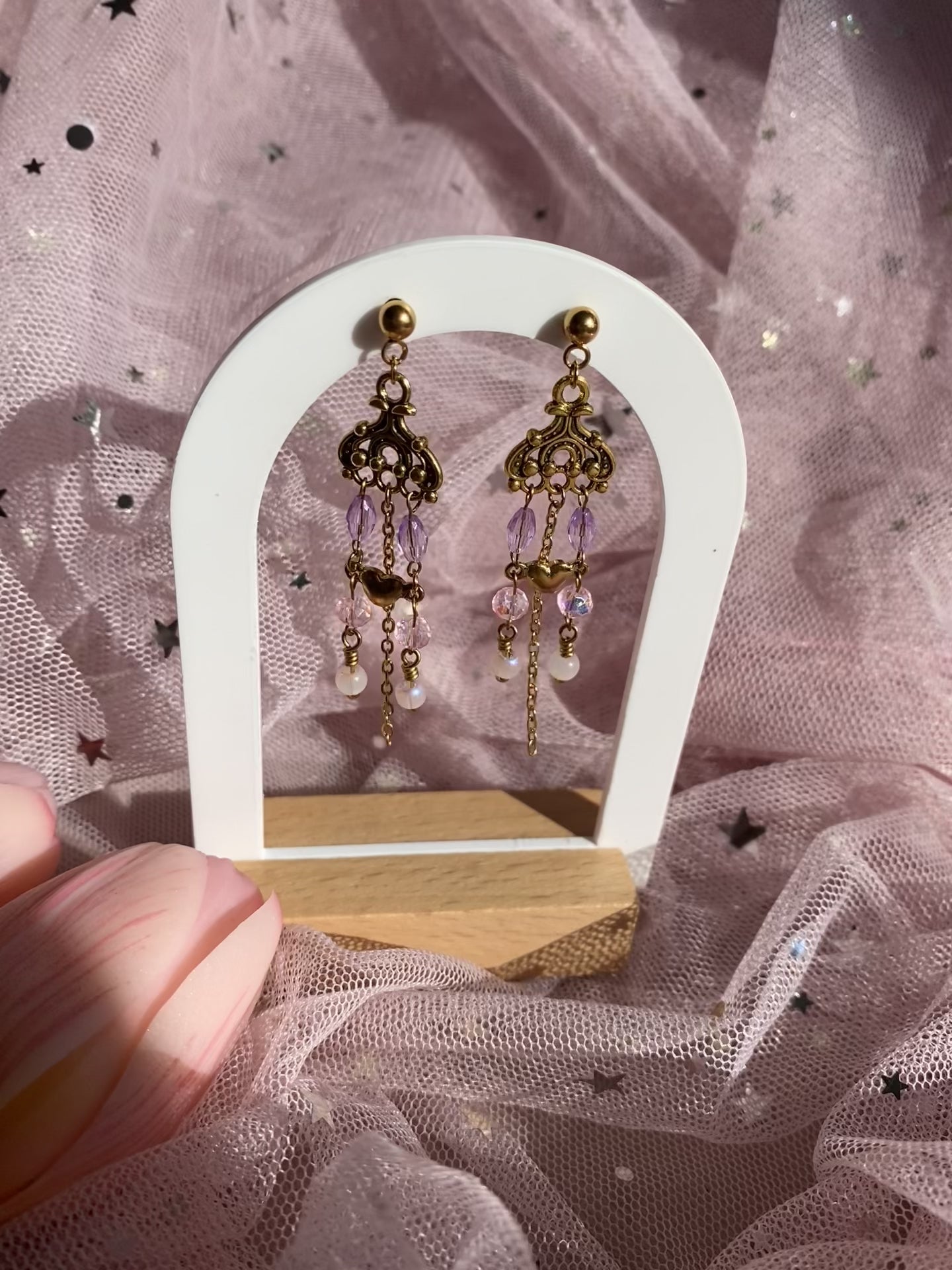 Our For Your Love Earrings are handcrafted with soft, dreamy pink and lilac beads + heart-shaped charms 💖. Delicate fine chains add a touch of whimsy. Perfect for everyday romance or special moments ⋆˙⟡