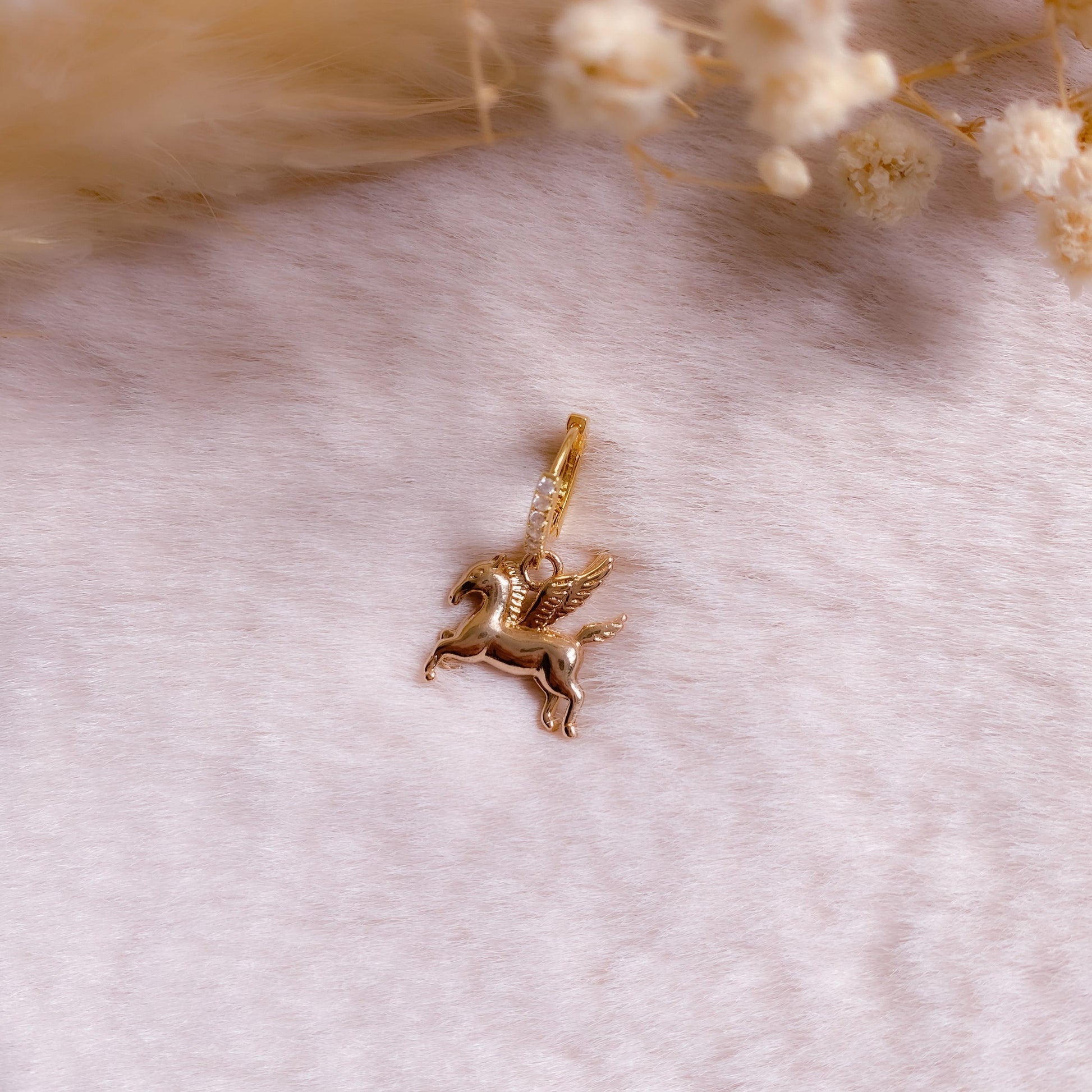 ☾ The Pegasus pendant measures 1.5 cm x 1.5 cm. The whole earring measures 2.7 cm x 1.5 cm.