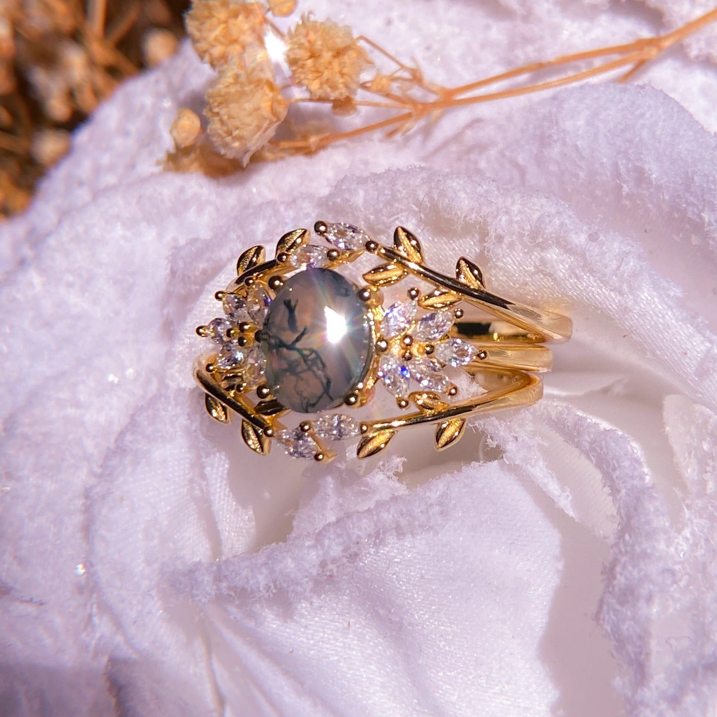 Moss Agate is characterized by opaque, dark green to rusty orange and cloudy inclusions that resemble fern or moss. Moss agate patterns are naturally distinct and unique, and you will never witness the same pattern in two gems. A specific look in a gem cannot be replicated, as these are not lab-created, so please keep in mind that the stone used in your ring may not look exactly the same as the stone in the listing photos. Each gem is different and will vary in appearance, which makes each ring extremely unique. It is one of a kind with a unique story that only you can tell! 💗