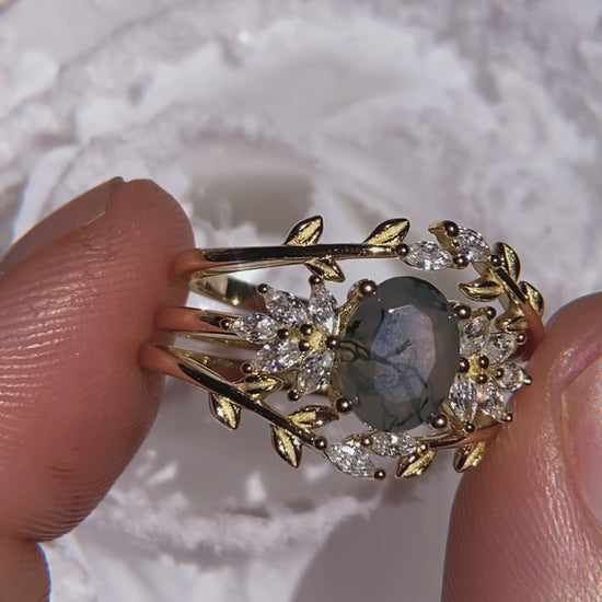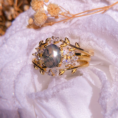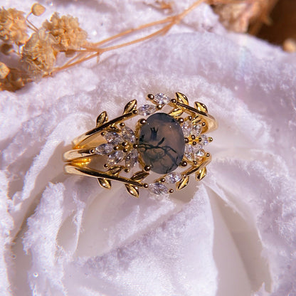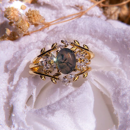 ☾ Materials: Thick 24K Gold Plating, 925 Sterling Silver, Authentic Natural Moss Agate, Natural Hand-Polished Zircons. Nickel free